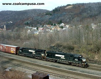 A railfanning picture with the Ehrenfeld coal town and slate dump in the background. This was actor Charles Bronson's hometown. He was