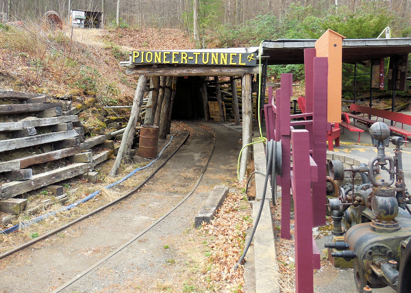 Tourist coal mine at Ashland, Pennsylvania named Pioneer Tunnel Coal Mine and Steam Train. Pioneer Colliery opened in the 1850s. In 1872, the mighty Philadelphia & Reading Coal & Iron Co. became the operator. The Pioneer breaker not at this portal, but over the hill at the railroad. In the 20th Century, this tunnel accessed the Bancroft Colliery's Buck Mountain vein workings. Bancroft was another P. & R. C. & I. mine. Bancroft's breaker was just a short distance away from the location of the original Pioneer Breaker. Bancroft underground mining turned into strip mining that was processed at nearby Locust Summit breaker before being abandoned in 1932.