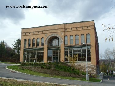 This painted brick building is one of the few remnants of the coal mining complex shown above. Of course the yellow paint is not original.