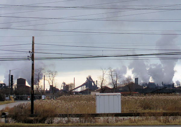 Part of the huge steel mill at Burns Harbor on Lake Michigan. This was the last integrated steel plant built in America in the 1960s by