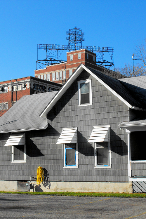 Detail around the General Electric buildings near downtown Fort Wayne.