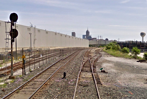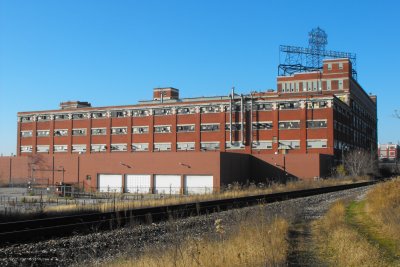 Rail cars next to the former Bendix Corporation plant in South Bend. Thankfully the attractive structure has