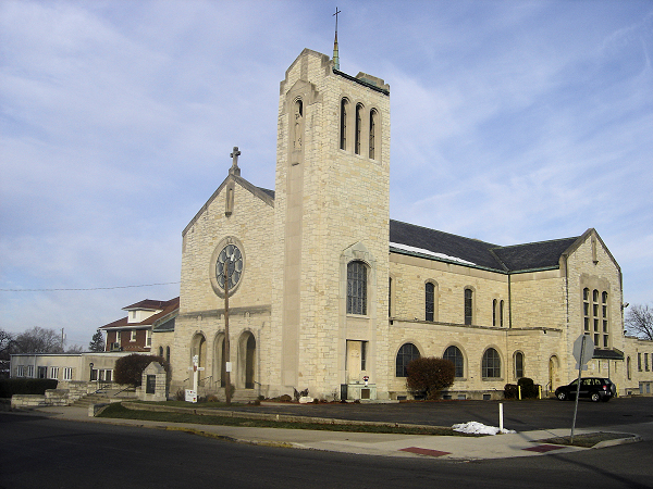 A bar in a former Polish neighborhood in South Bend. In the background is St. Casimir's Catholic Church.