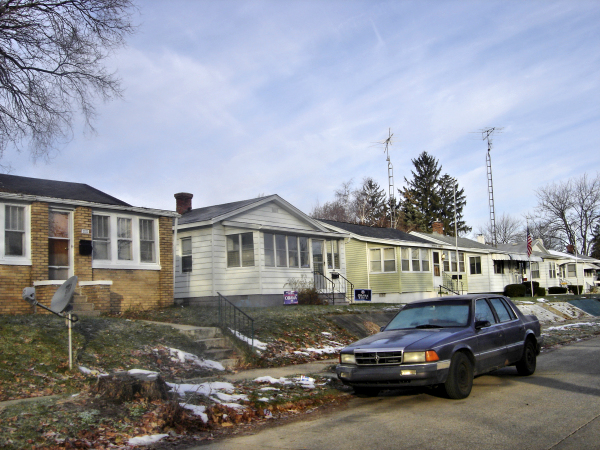 Homes on the hill above the Studebaker factory in South Bend. Note the old fashioned TV antennas. A remote control