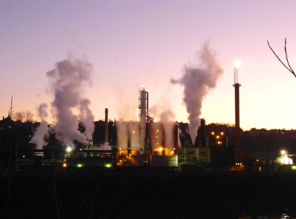 manufacturing plant. In the background is the city of New Kensington, PA.