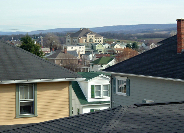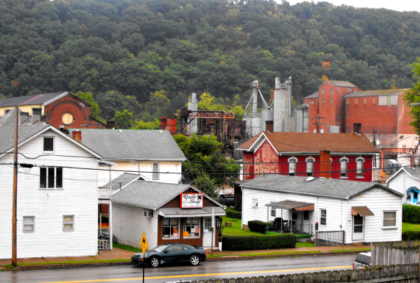 roof is Pritt's Feed Mill, typical of small Rust Belt towns.