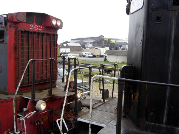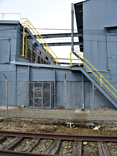 Looking between SWP engines in Scottdale, PA, with the large Duraloy plant in the background. Duraloy is a foundry of specialized alloys.