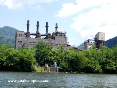 Another section of the Elkem Metals plant. The facility is best known for its source of electricity. In the 1930s the nearby New River was dammed up at Hawk's Nest, and the