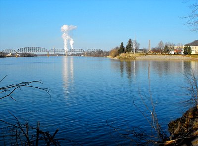 Elkem Metals as viewed from across the Kanawha River. The river becomes non-navigable a few miles above this point. Elkem purchased the facility from EMCO in 1981.