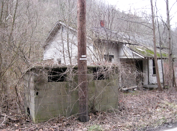 The block structure in front of the abandoned home was a "coal house." This was where the coal company truck would stop and deposit coal for two houses for them