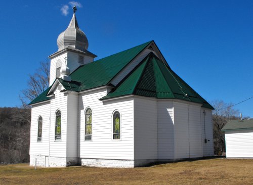 Sacred Heart Cemetery behind the church. Both times that I have visited the church there is a man that looks to be in his 30s walking around