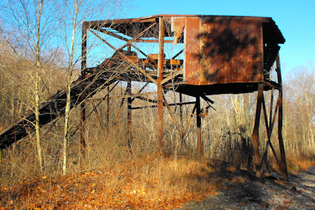 tipple, shown in the background, at Pennsylvania Coal & Coke Corp.'s No. 21 mine. Pennsylvania Coal & coke, headquartered