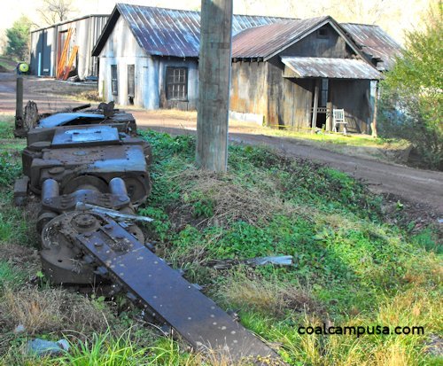 A coal undercutting machine. I was told that the building in the background was once a church. Heck of a location for a church.