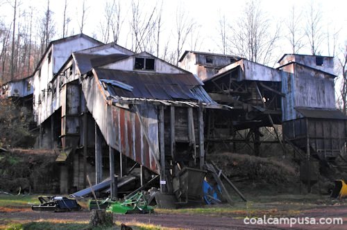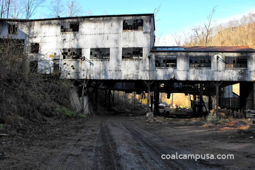 Clover Fork Coal Co. operated the coal mine at Kitts, Kentucky from 1914 until 1958. Amazingly enough the wood products company that owns the property now has preserved much of the colliery. And it is amazing.