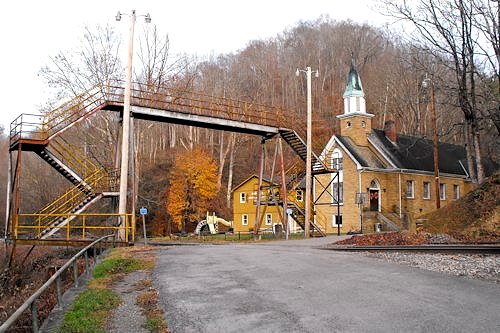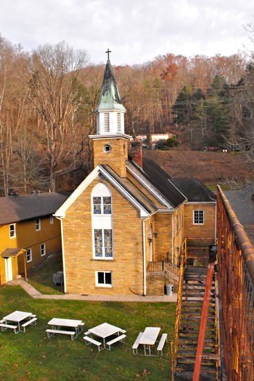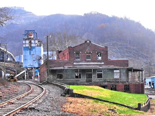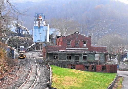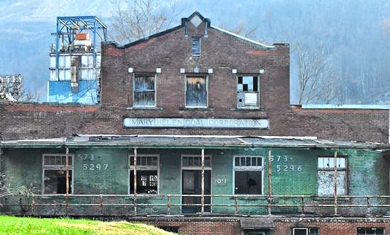 The old Mary Helen Coal Company commissary with the coal mine buildings behind it. This is still an active coal mining operation.