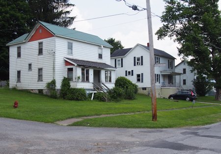 Company houses for miners. Note the stone foundations. A quarry was operated on the hill above Carolina during the construction of the