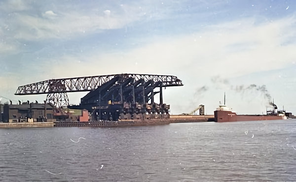 Another view of the Ashtabula port area showing the famous arched conveyor transporting ores and minerals from one side of the harbor to the other.