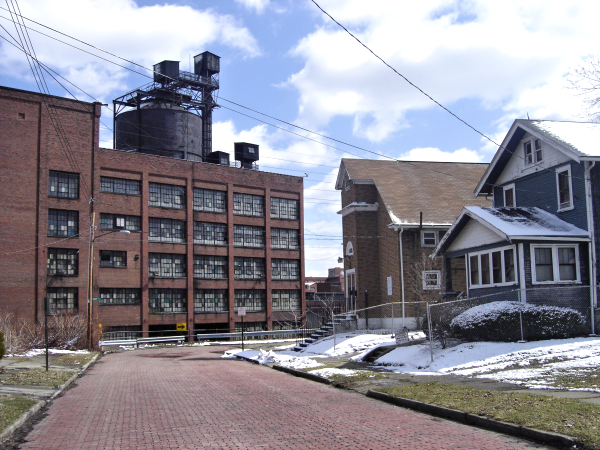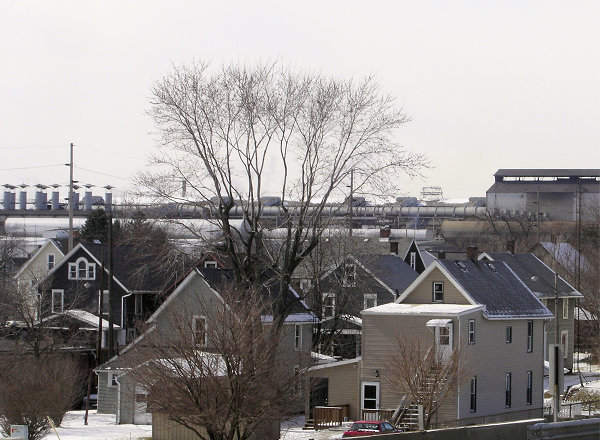Canton homes with the Timken factory in the background.