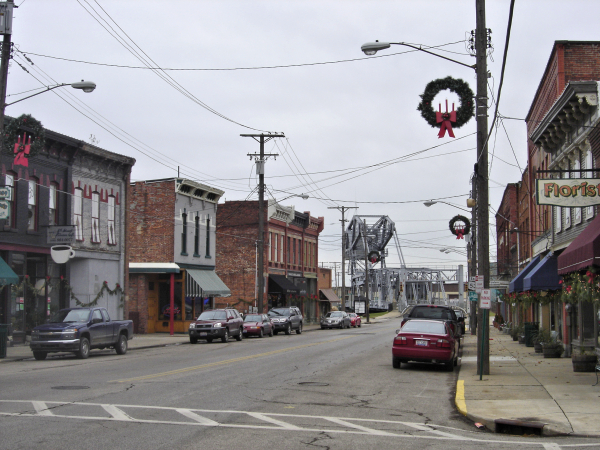 Downtown Ashtabula, OH, with the "lift bridge" in the background. To be honest Ashtabula does has a modern "mall" section of town, but