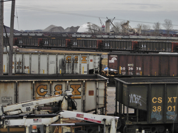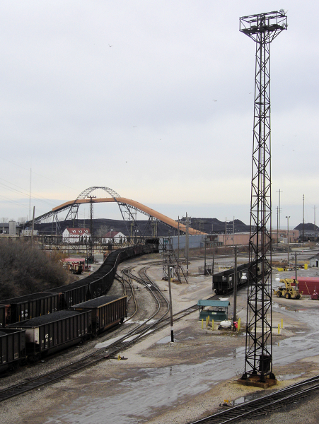 A small part of the Lake Erie port of Conneaut, OH. I saw stockpiles of coal, taconite, and stone (limestone?) waiting for shipment from