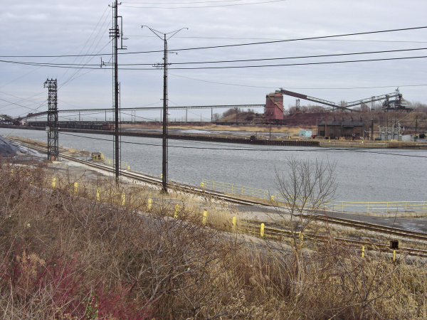 Another view of the Ashtabula port area showing the famous arched conveyor transporting ores and minerals from one side of the harbor to the other.