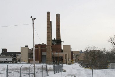 Idled Jeep factory in Toldeo. This factory was demolished in 2007, but allegedly one smokestack was left for posterity. At least there is a newer Jeep factory across town, so here is one