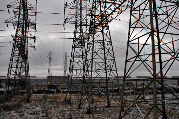 Detail of the infrastructure of the Arcelor-Mittal mill along Independence Road in Cleveland.