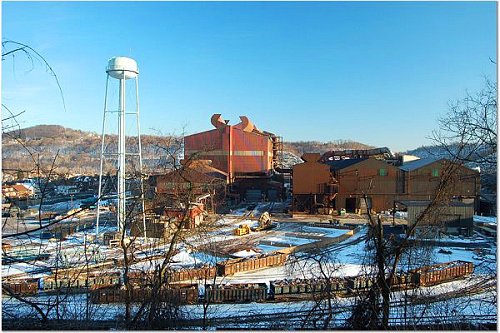 manufacturing plant. In the background is the city of New Kensington, PA.