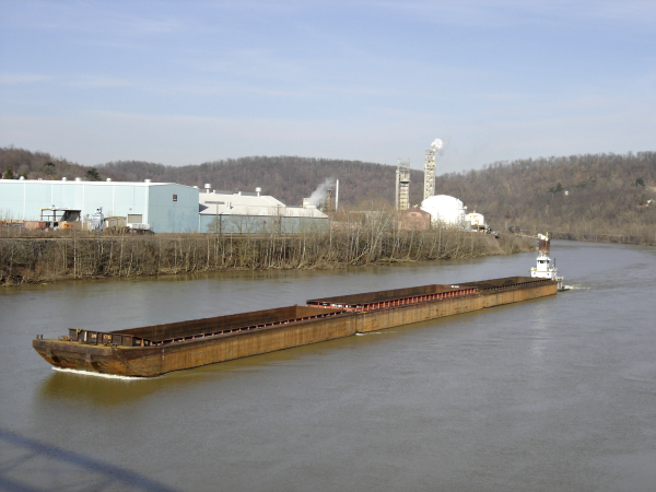 on the Mon River. In the background is an industrial section of Donora, a town