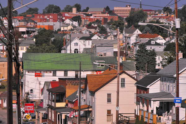 roof is Pritt's Feed Mill, typical of small Rust Belt towns.