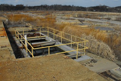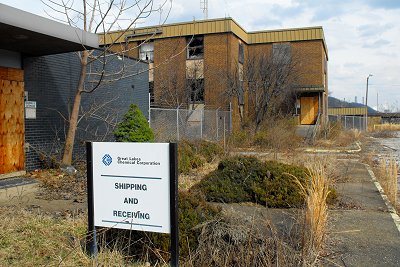 Where once a sprawling Great Lakes Chemical Co. plant once stood, I found only these brownfield foundations.