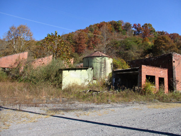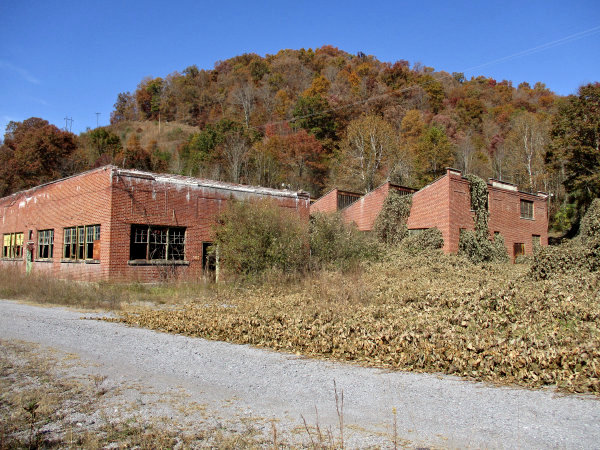 Remaining Pocahontas Fuel Co. structures near where Mine No. 34 was located. The buildings were probably the repair shop/parts warehouse and mine office/bathhouse/lamphouse.