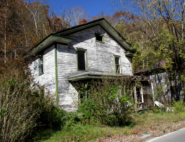 I photographed this abandoned company house because it shows the original building materials. Even the paint may be original. Unfortunately,