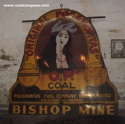 This sign from the Bishop mine was on display at the Pocahontas Exhibition Mine.