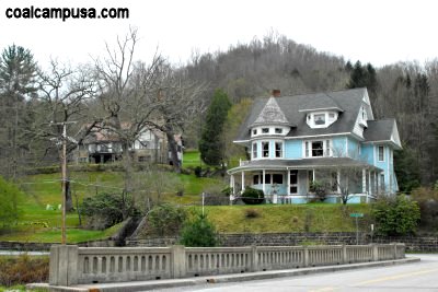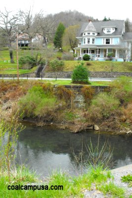 to build their homes in Bramwell - not only is it on a nice, flat spot along the Bluestone River, it's also just beyond the edge of the coal, thus sparing