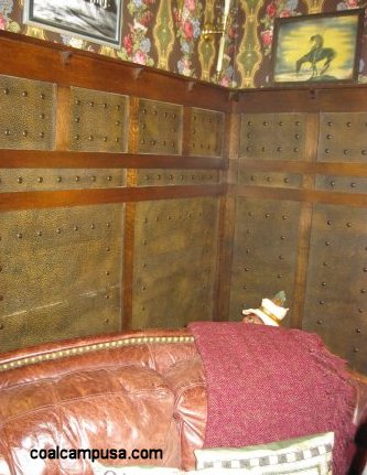Leather wall covering (imported from Venezuela) in the Mann house.