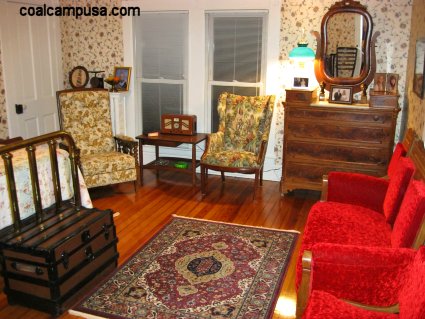 Living room in the former residence of Jarius Collins. He was the brother of coal baron Justus Collins, who had big mines at