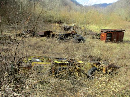 These dilapidated buildings, which probably included maintenance and electric shops, were next to the tipple. The building with the smokestack coming out of it appears to