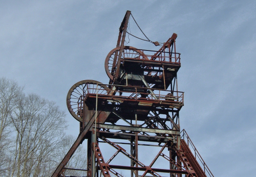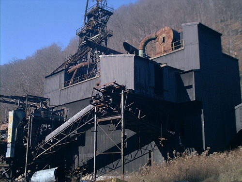 Another view of the prep plant showing the rotary breaker and the skip hoist. This hoist brought coal to the plant to be processed. There was also a "man hoist" which