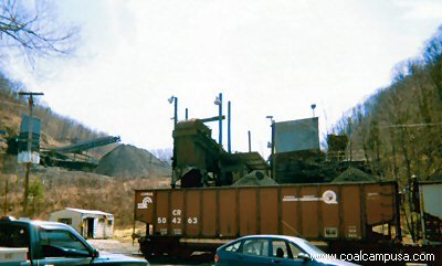 Black Wolf Mining Company's coal mine at Elbert loads a train.