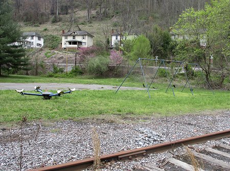 Visable in this photograph are some of the houses in Elbert on the right, some of the gondola cars Black Wolf has loaded