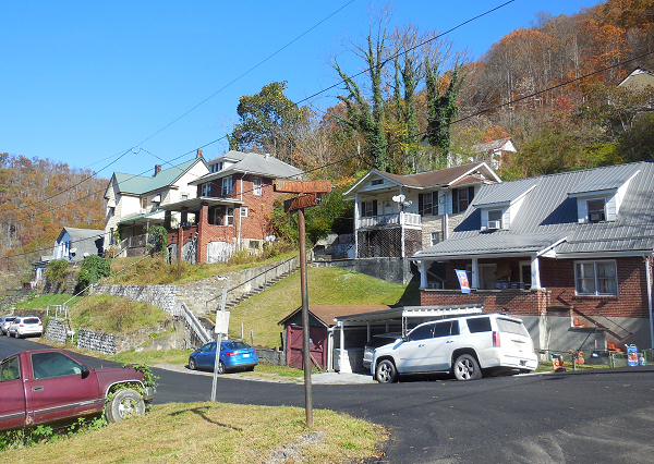 Note the homes with terraced front yards to accomodate the sloping terrain.