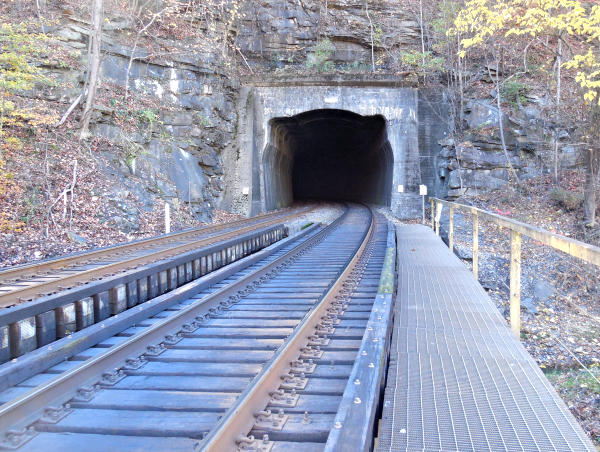 This tunnel at the edge of Kimball is known as the West Vivian Tunnel. It is not too long and curved. The former Norfolk & Western Railway is