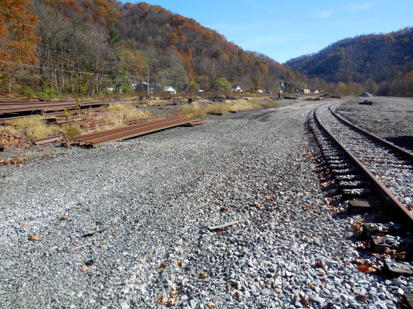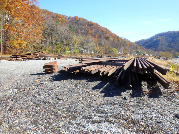 Rail and other rail infrastructure items stored at Norfolk-Southern's Kimball Track Maintenance area.