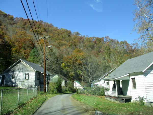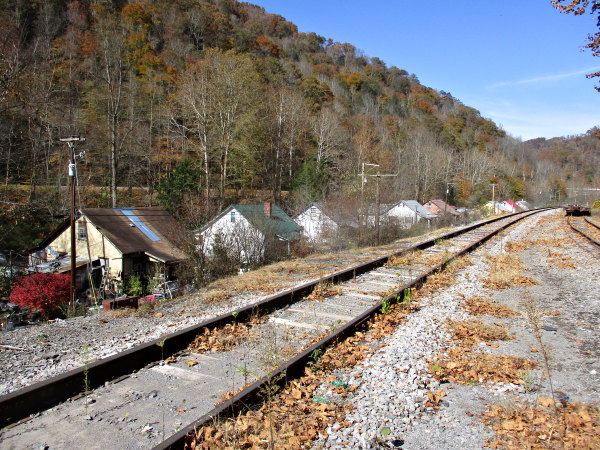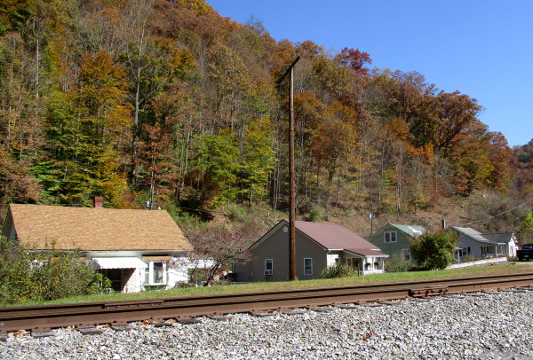 Coal camp houses along the railroad and rail siding that was originally for the No. 6 mine. Only one house still sports its original chimney.