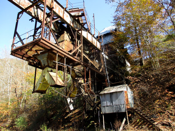 This bridge crosses over the entire Jacobs Fork hollow, and once carried mine locomotives from mine portals.