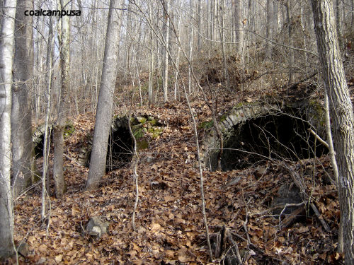 Ruins of the beehive coke ovens. These coke ovens were last fired in 1921. It seems that the front facades never last on most coke oven remains. Often the stones or bricks were stolen