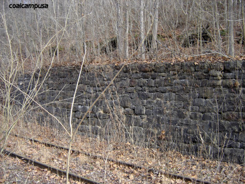 Retaining wall and rail siding at the remains of the coke ovens. Coke drawers would stand on top of the wall
