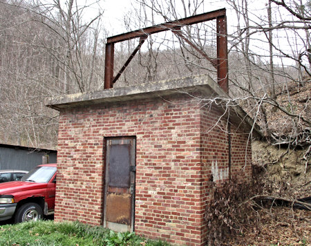 steam locomotive water tender that has served as a water tank for residents of this hollow for many years.