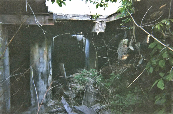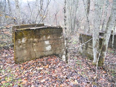 Next to the square is the minehead. The tipple, rails, power plant and machine shop have all been gutted for scrap. The power plant's concrete smokestack towers coldly over the rusted remains like a monument to the once-proud